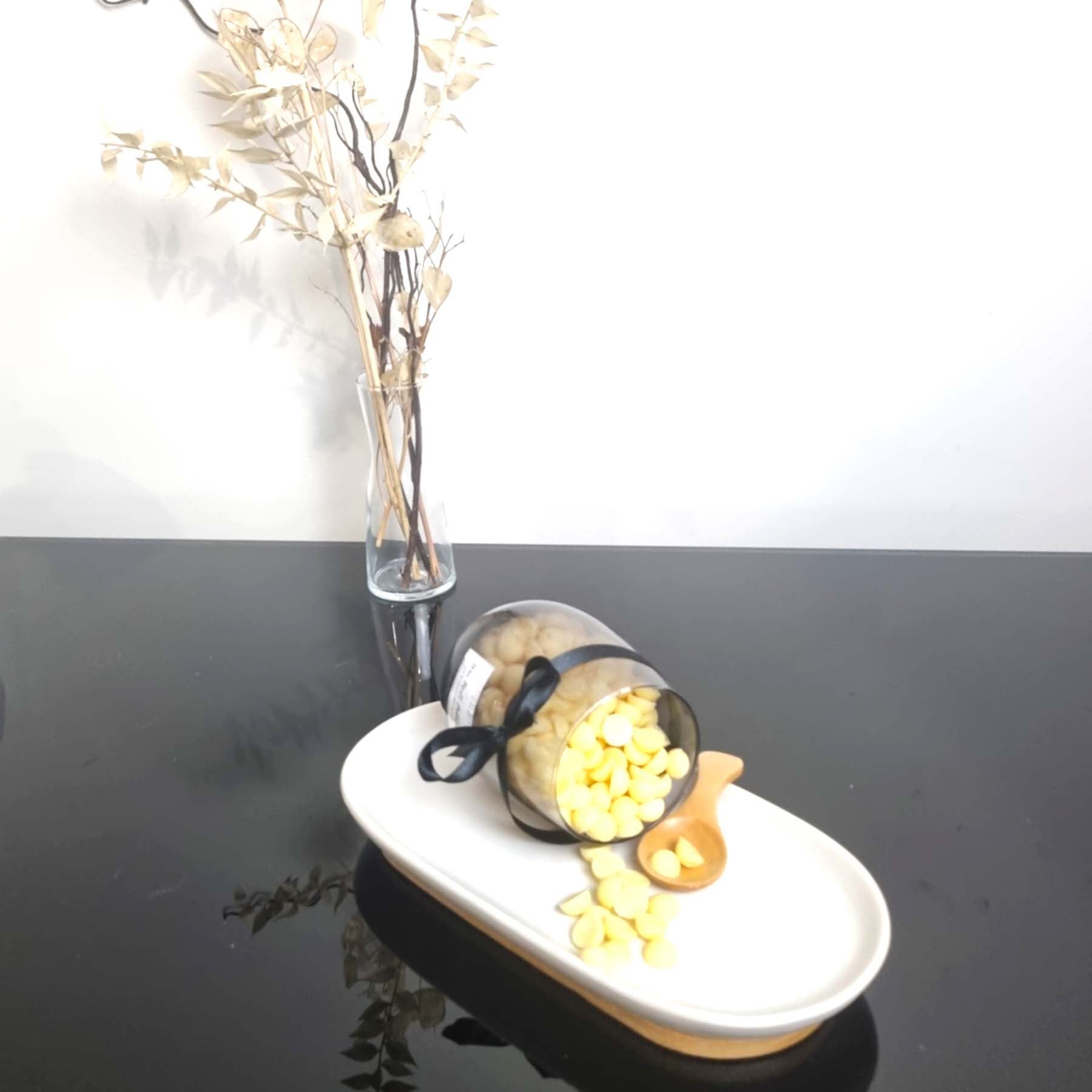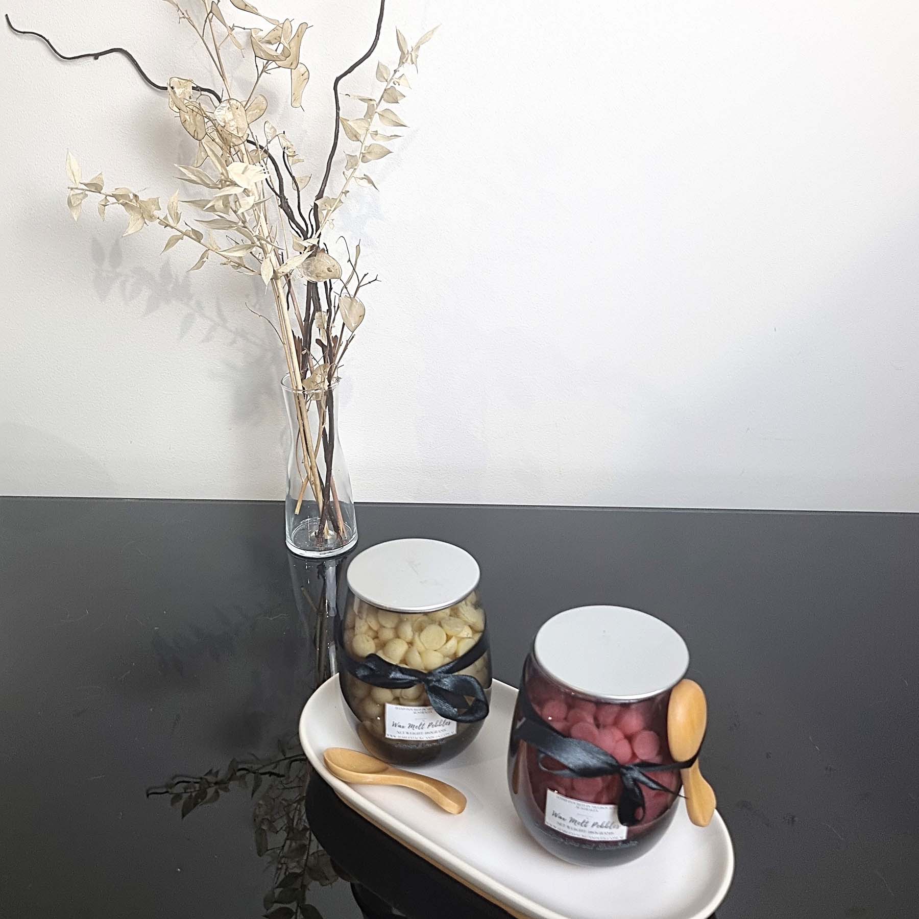 Experience effortless fragrance with our Wax Melt Pebbles, beautifully presented in a reusable jar and paired with a handy spoon for easy use. Made from premium natural soy wax and high-quality Australian-made fragrance oils, these handcrafted pebbles allow you to customise your scent strength—simply scoop out your desired amount and add it to your wax burner or warmer.
